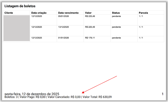 - Boletos – Inclusão de novos totalizadores no relatório em formato .PDF.