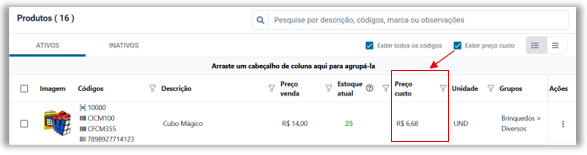 - Preço de custo – Correção para exibir o preço de custo, conforme cadastro do item. Anteriormente estava exibindo o preço de compra.