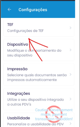 - Clicar opção TEF