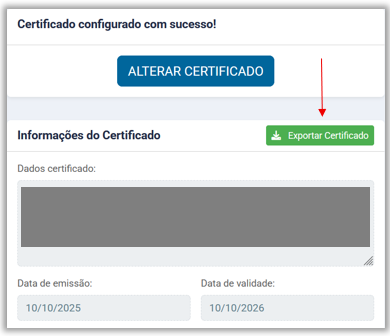 - Certificado digital – Nova função para exportação de certificado, disponível apenas para usuários de suporte/admin.