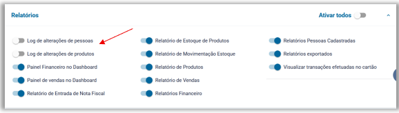 - Configurações > Usuários > Perfil de acesso – Novas permissões para visualização dos logs de alterações. Por padrão, estes acessos permanecerão desabilitados.