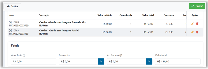 - Pedido de venda – Ajuste na exibição da barra horizontal na área de Produtos/Serviços. Ao rolar a tela para baixo, o usuário poderia ficar impossibilitado de clicar nas opções de ação, como Imprimir, Cancelar ou Salvar, por exemplo.
